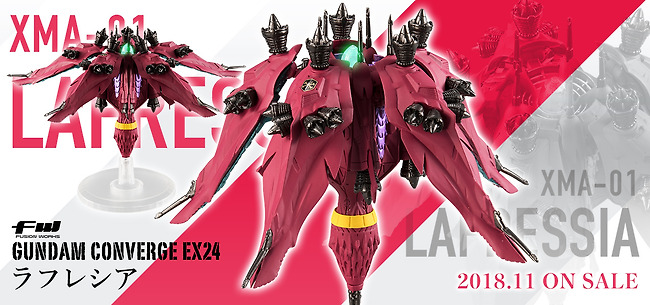 A. 개요2018년 11월 반다이 식완 신제품, 'FW GUNDAM CONVERGE EX24 라플레시아'을(를) 소개합니다. · 제품명: FW GUNDAM CONVERGE EX24 라플레시아· 가격: 3,200엔 (소비세 미포함)· 발매일: 2018년 11월 예정· 등장 작품: 기동전사 건담 F91* 제품 관련 공식 정보의 출처는 "건담 식완 포털(링크)" 입니다.※ 반다이 식완 사업부의 출하 일정에 따라 발매 일정이 변경될 수 있습니다. B. 제품 설명「FW GUNDAM CONVERGE」 EX 시리즈 24탄 「XMA-01 라플레시아」가 등장!「CONVERGE」의 디테일을 추가하여 전체 높이 약 95mm의 큰 볼륨으로 입체화!또한 파츠 교환으로 순항 형태 ⇔ 전개 형태로의 변형이 가능.프리미엄 반다이 한..